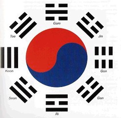 Tous les pratiquants connaissent ce symbole à travers le drapeau Sud Coréen. En 1882 une ébauche est réalisée à partir du symbole antique (4000 ans environ) du TAE GEUG.Le drapeau tire donc son origine dans le TAE GEUG littéralement "grandeur et éternité".